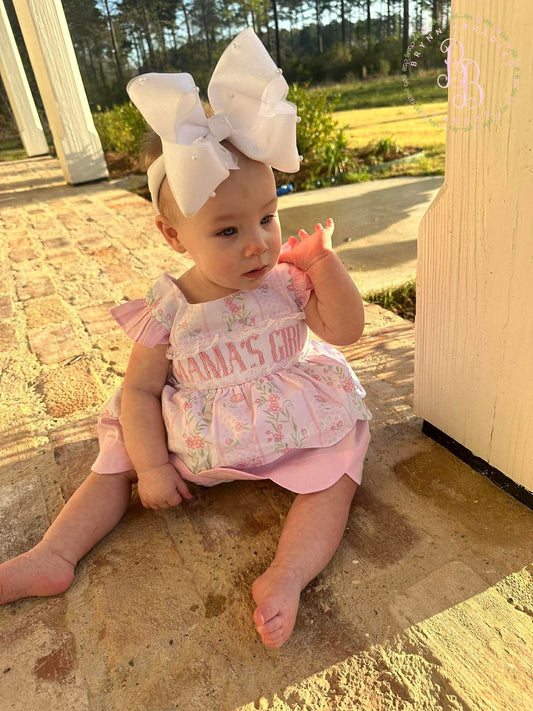 RTS: Emersyn’s Floral “Mama’s Girl” Girl Diaper Set + Dress