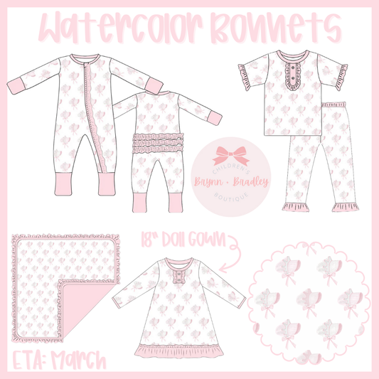 RTS: Watercolor Bonnets Bamboo 18” Doll Gown