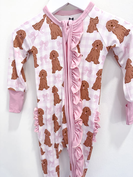 RTS: Pink Doodles Bamboo Ruffle Zippy