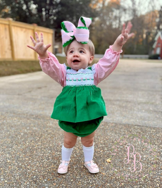 RTS: Girl’s Green Corduroy Bows Bubble Set