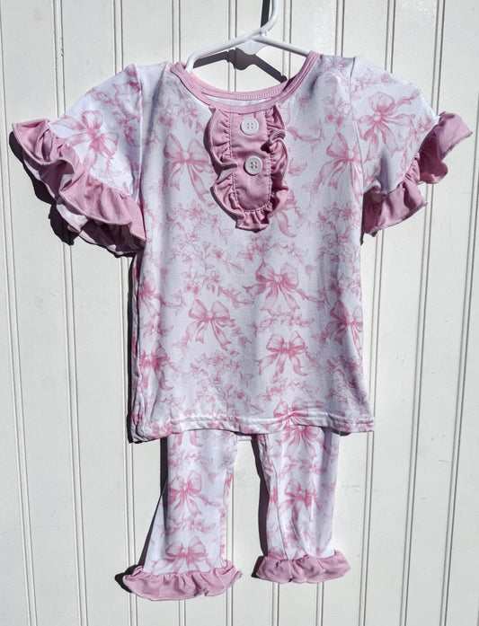RTS: Girl’s Pink Toile Bows Bamboo Short Sleeve Pants Set