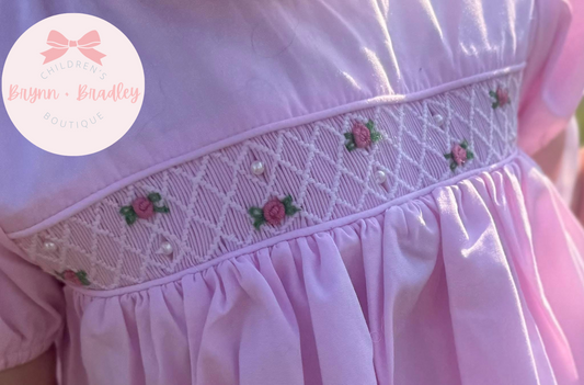 RTS: Girl’s Geo Smocked Pearls + Roses Dress