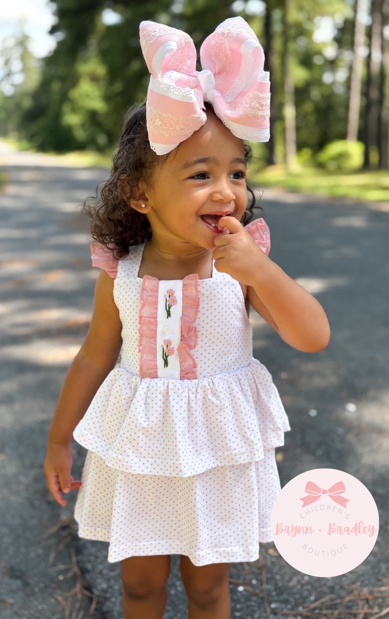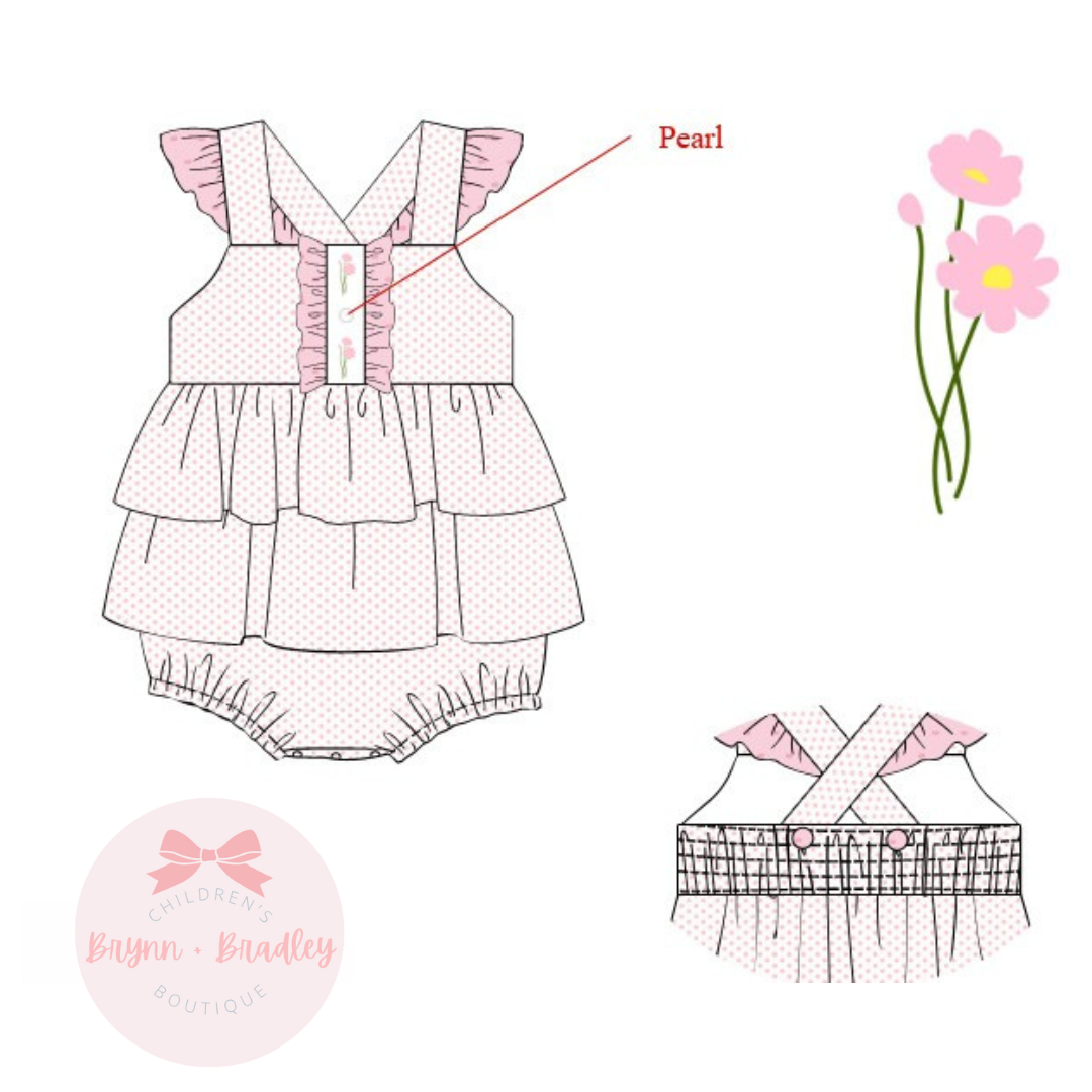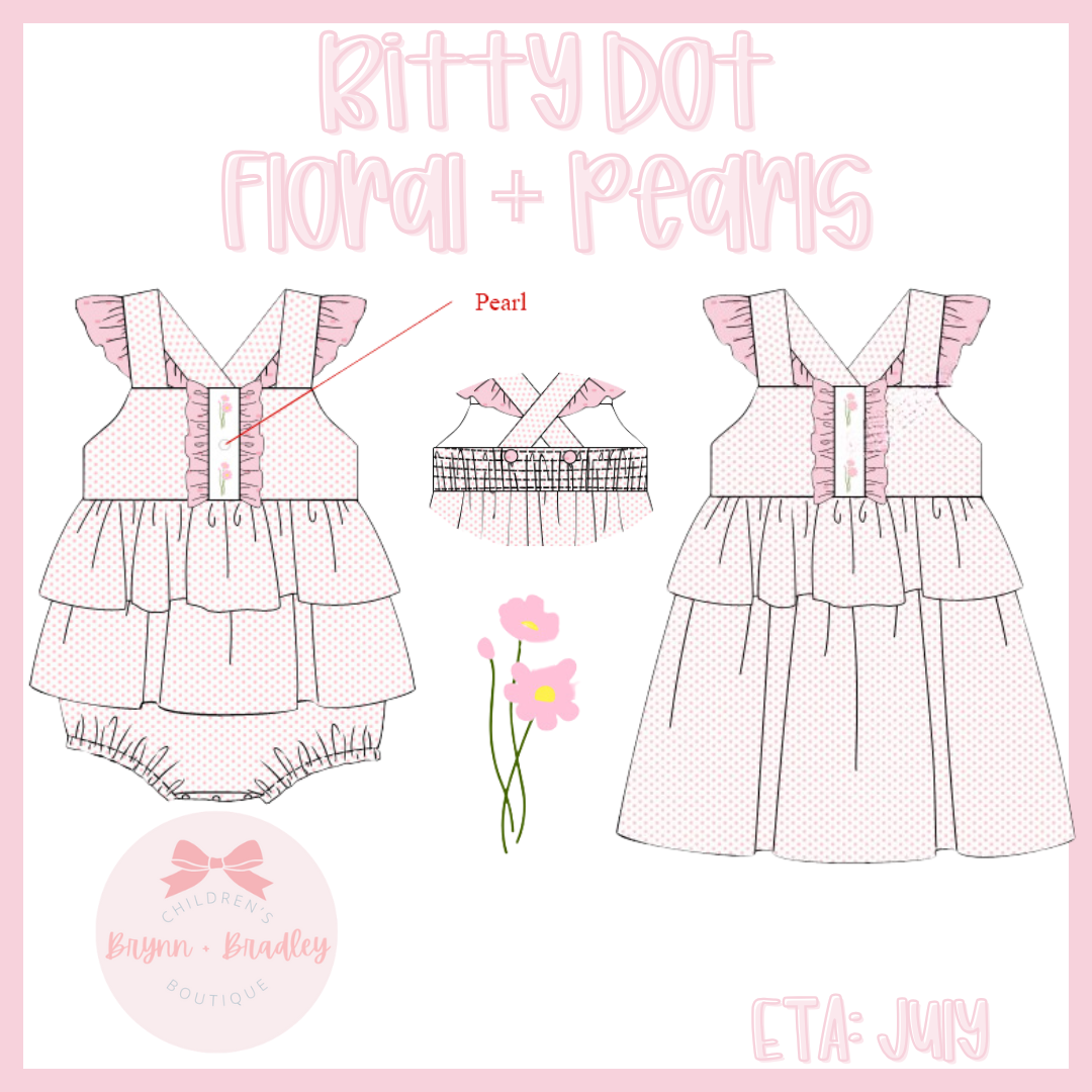 RTS: Bitty Dot Floral + Pearls Girl Skirted Bubble