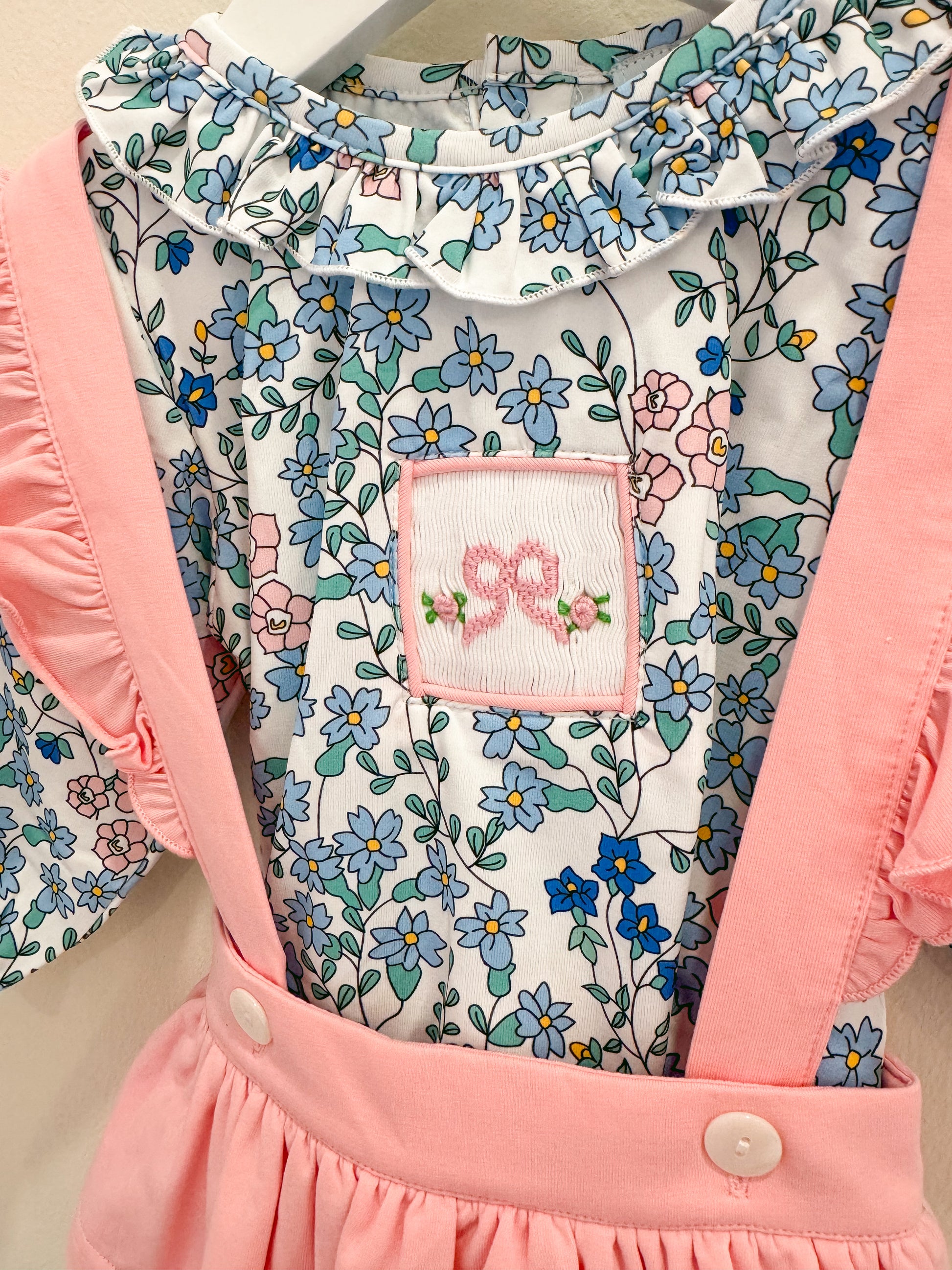 Hand Smocked Printed Knit + Solid Pima Cotton
