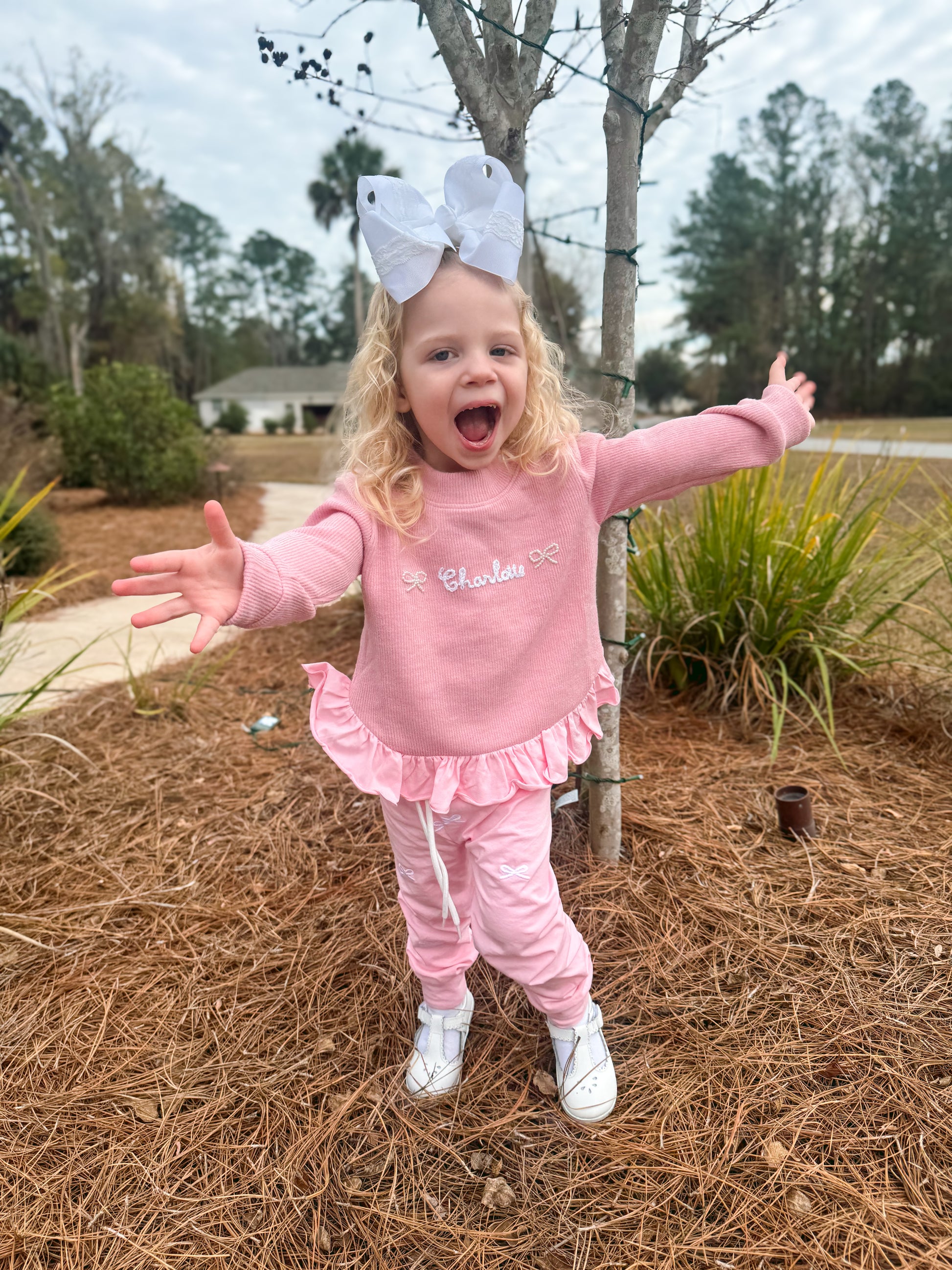 **These have the personalization of “Sweet Girl” between the pearl bows!**