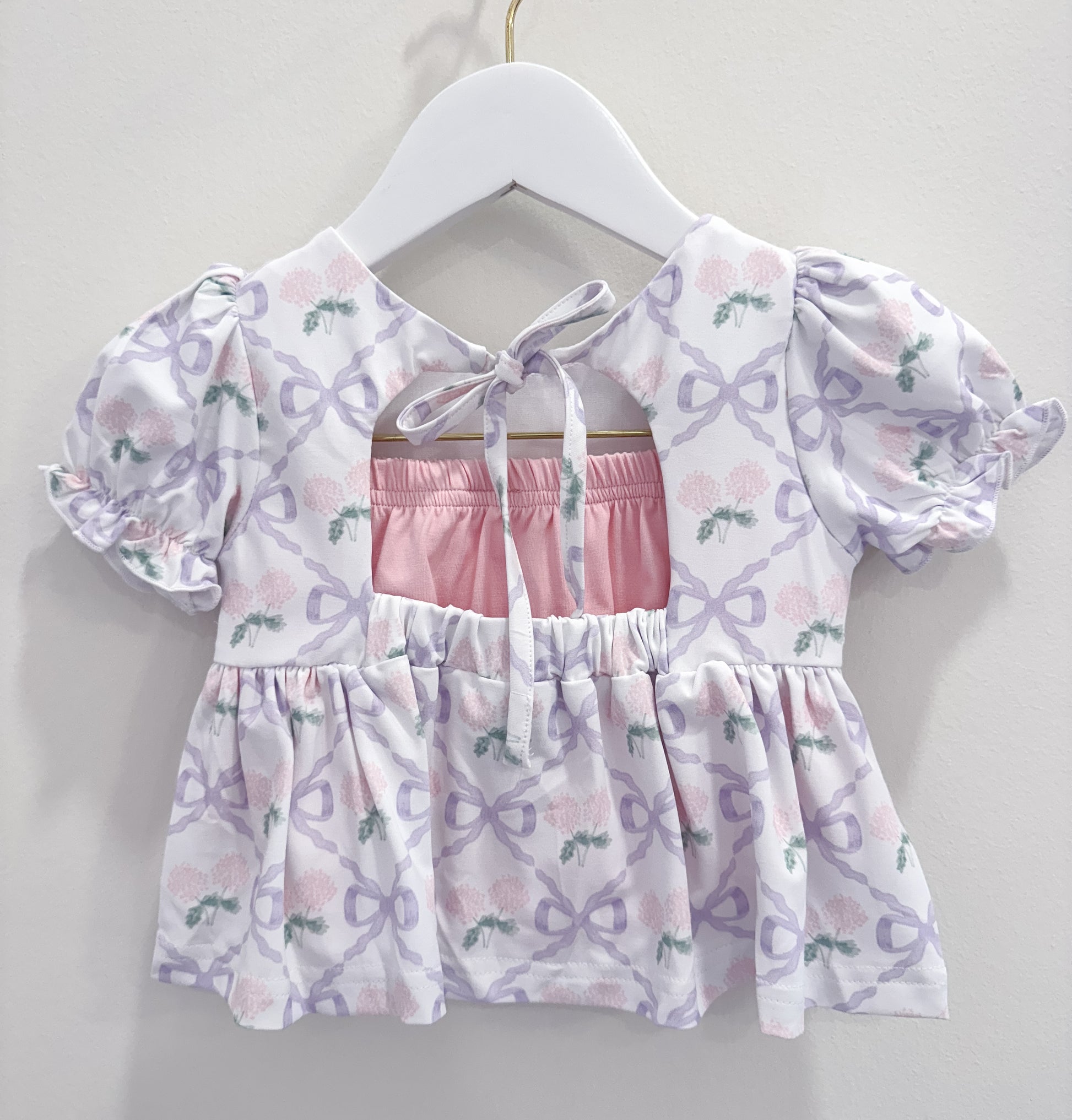 RTS: Hydrangeas + Bows Girl Diaper Set