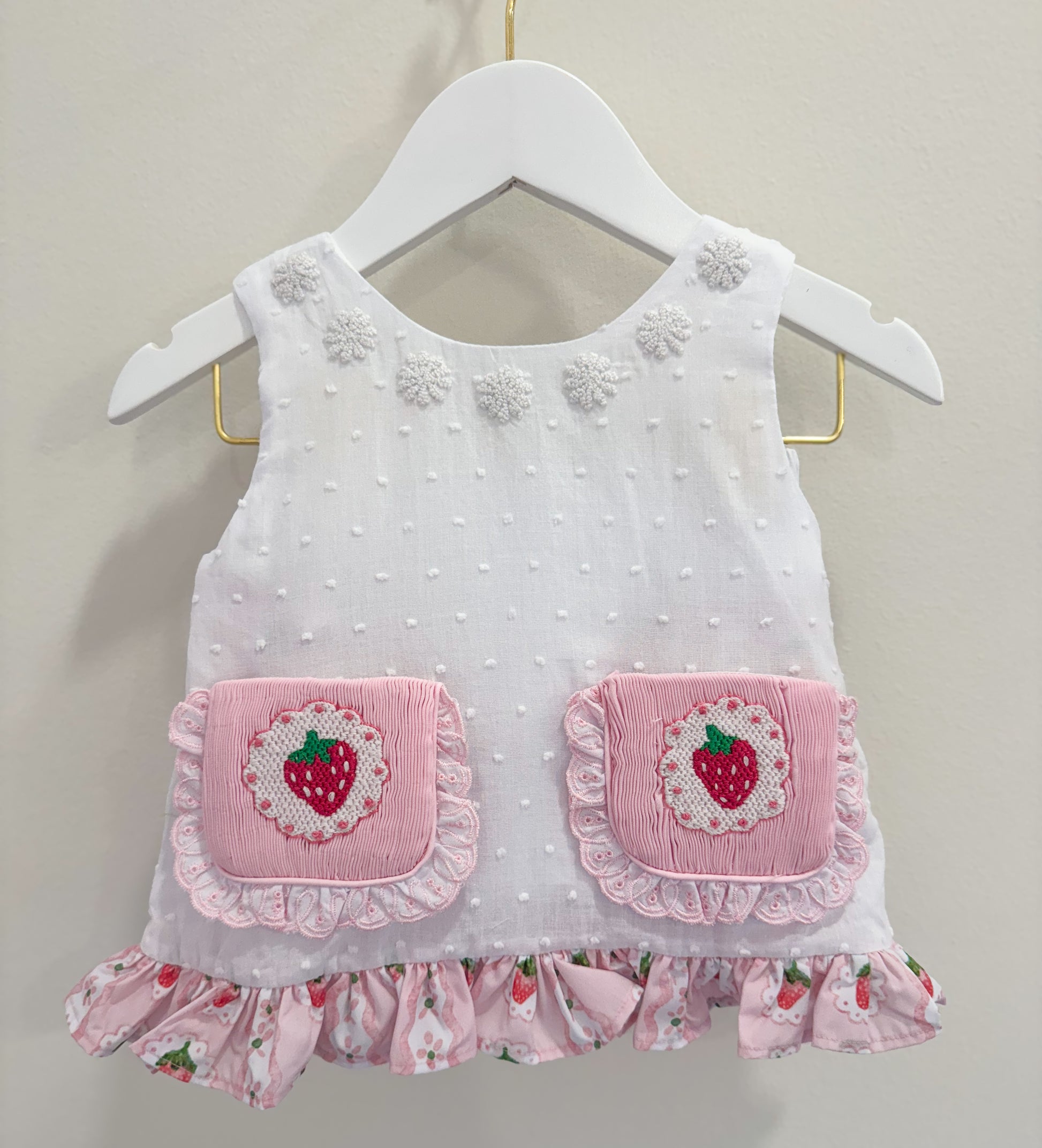 Swiss Dot + Custom Woven Cotton with French Knot Embroidery + Hand Smocked Pockets