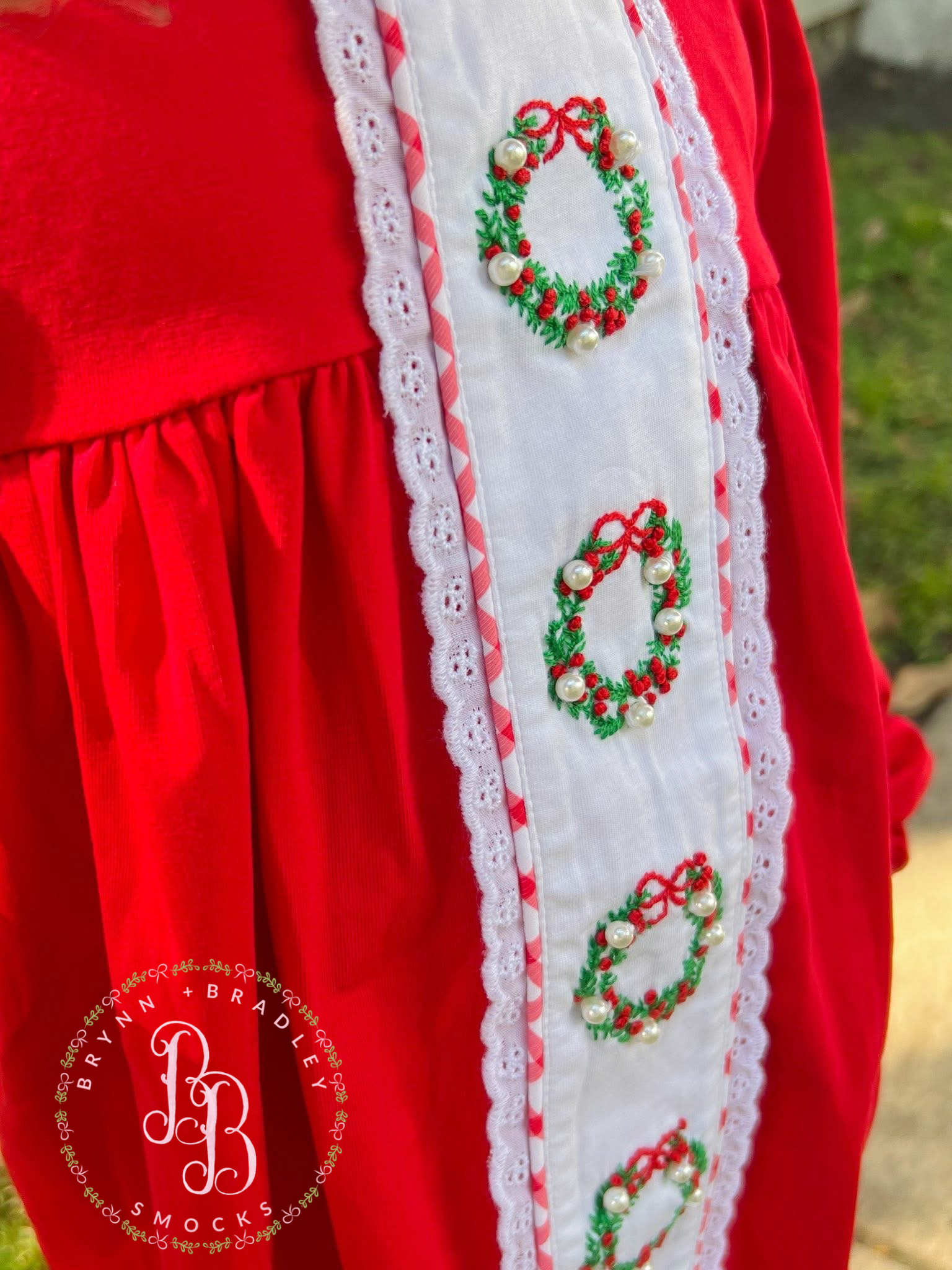 Solid + Gingham Knit Cotton with Lace Trim, Hand Embroidered Wreaths and 3D pearls!